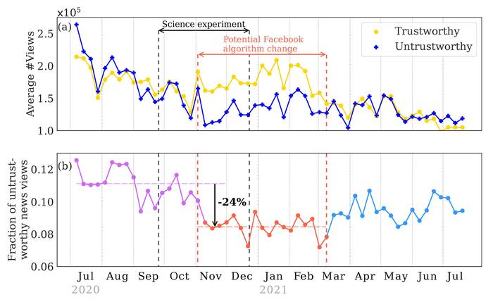 Beginning around the start of November 2020, Meta introduced 63 “break glass” changes to Facebook’s news feed which were expressly designed to diminish the visibility of untrustworthy news surrounding the 2020 U.S. presidential election. These changes were successful. “We applaud Facebook for implementing the more stringent news feed algorithm,” says Przemek Grabowicz, the paper’s senior author, who recently joined University College Dublin but conducted this research at UMass Amherst’s Manning College of Information and Computer Science. Chhandak, Grabowicz and their co-authors point out that the newer algorithm cut user views of misinformation by at least 24%. However, the changes were temporary, and the news algorithm reverted to its previous practice of promoting a higher fraction of untrustworthy news in March 2021.