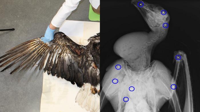 By X-raying all remains, the researchers were able to more accurately identify bird shootings even when the manner of death was not externally apparent from the carcass. For example, the team examined a bald eagle that a power line owner thought had died from electrocution. However, when they X-rayed the bird, they identified numerous shotgun pellets and entrance wounds throughout the eagle’s body, suggesting that the bird was actually shot and then made contact with power lines as it fell to the ground.